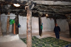 Cemevinin 12 direkli bir çadır görünümünde 2.5 metre yüksekliğinde, 1.5 metre kalınlığında taş duvarlar üzerine bindirilerek kırlangıç kubbe tekniği ile 1224 yılında inşa edildiği öğrenildi.